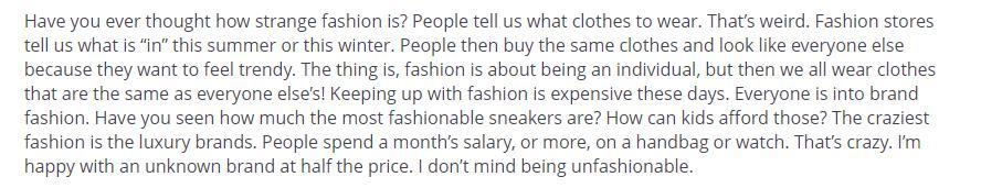 TASK 1. CHOOSE THE CORRECT ANSWER. ACCORDING TO THE SPEAKER FASHION IS _____