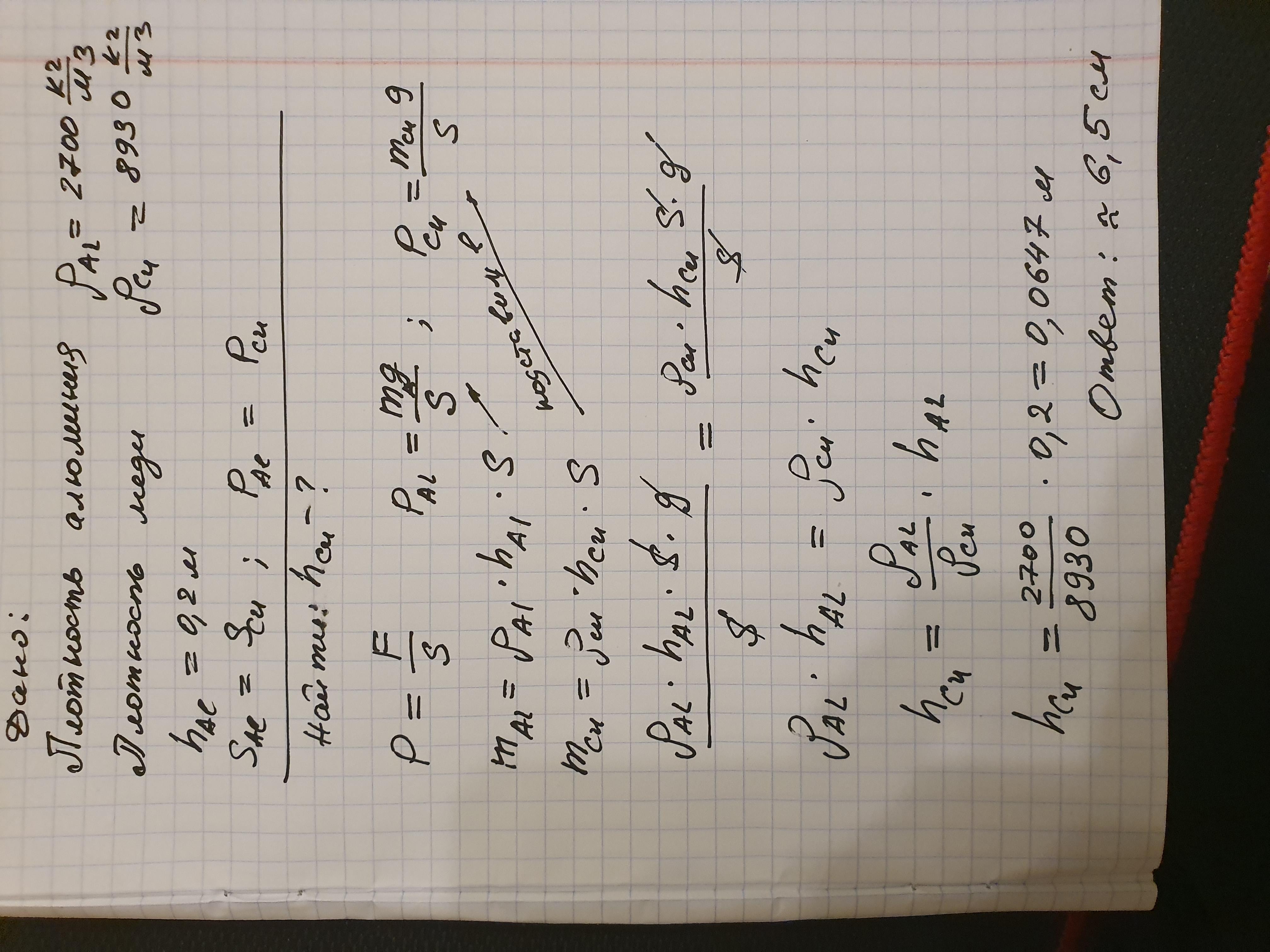 2. Цилиндр, изготовленный из алюминия, имеет высоту 20 см. Какую высоту должен иметь медный цилиндр, чтобы оказывать на стол такое же давление?