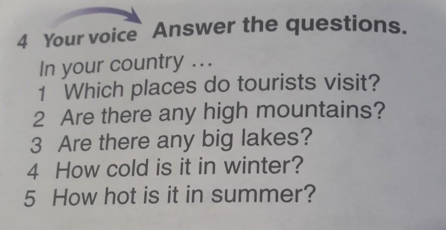 Объяснение: Просто вбейте ответы на эти вопросы о своей стране в переводчике и спишите ответы