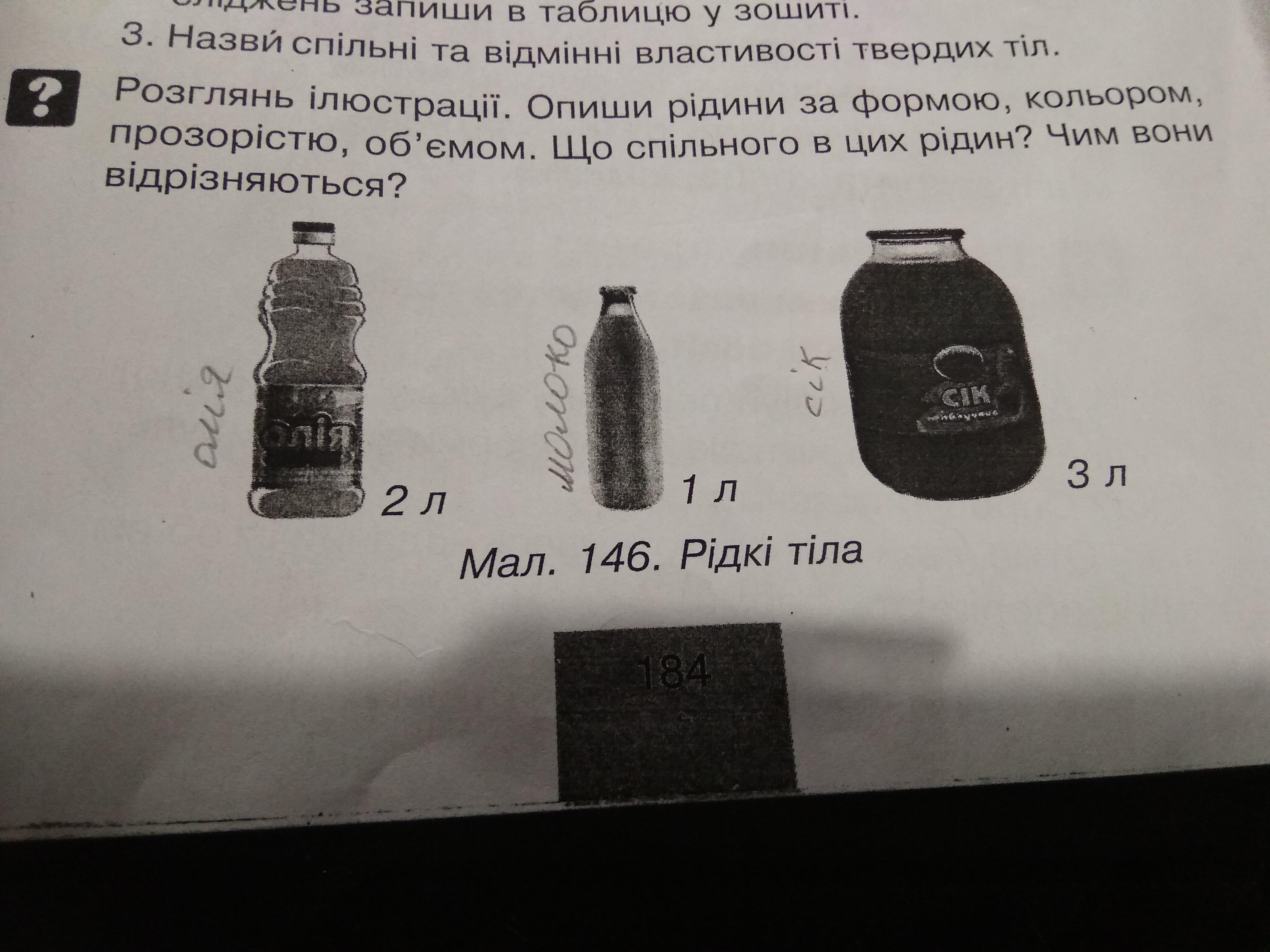 Відповідь:олія най прозоріша і в неї обєм 1,5 л молоко воно однорідне і через молоко нічого не видно його обєм 1 л а сік може бути рідкий і через нього видно а якщо він густий то соком ток само з молоком і наскрізь нього теж не видно його обєм 3 л