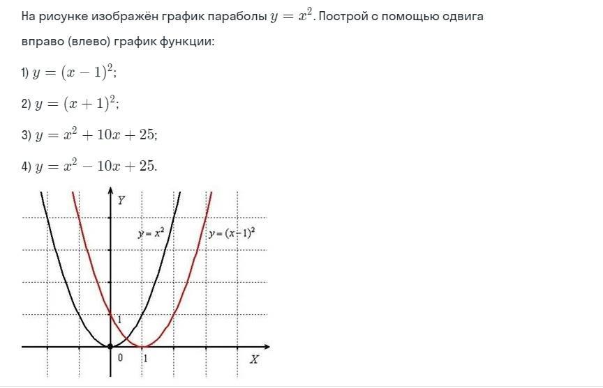 1) у = (х - 1)² - график получен путём сдвига графика у = х² вправо по оси Ох на 1 единицу;