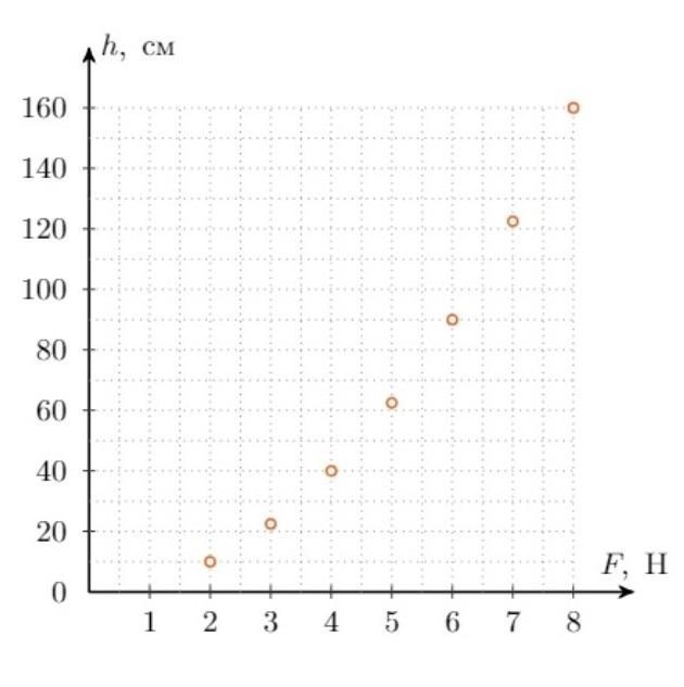 вертикально вверх. Сжимая пружину с разной силой, они отмечали максимальную высоту подъёма шарика после выстрела. Жёсткость пружины k = 100 H/м.
