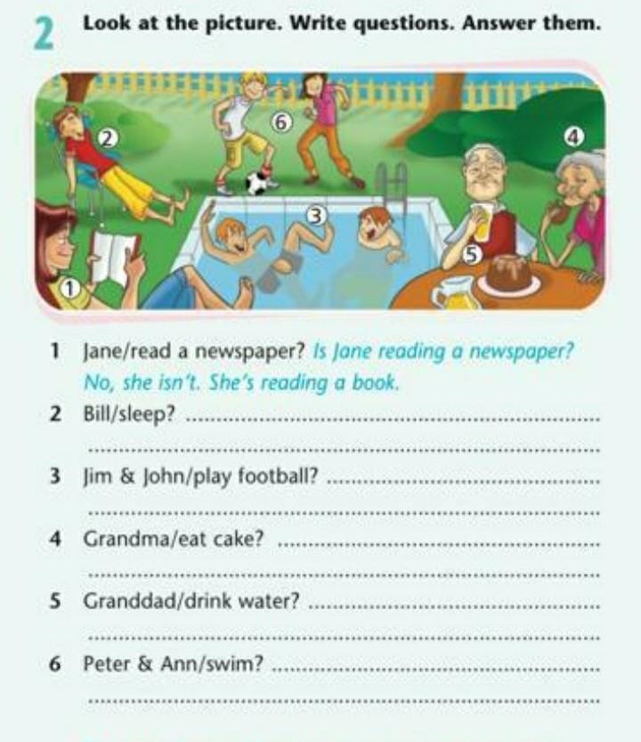 - Are Peter and Ann swimming? Bo they aren't. They are playing football