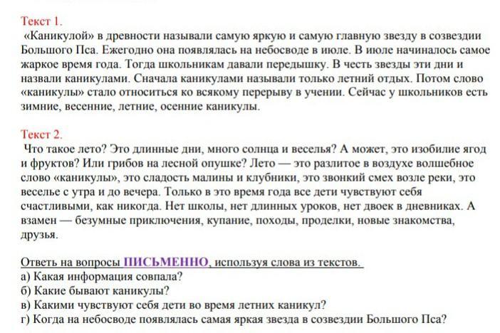 а) В 1 и 2 тексте говорится о летних каникулах.