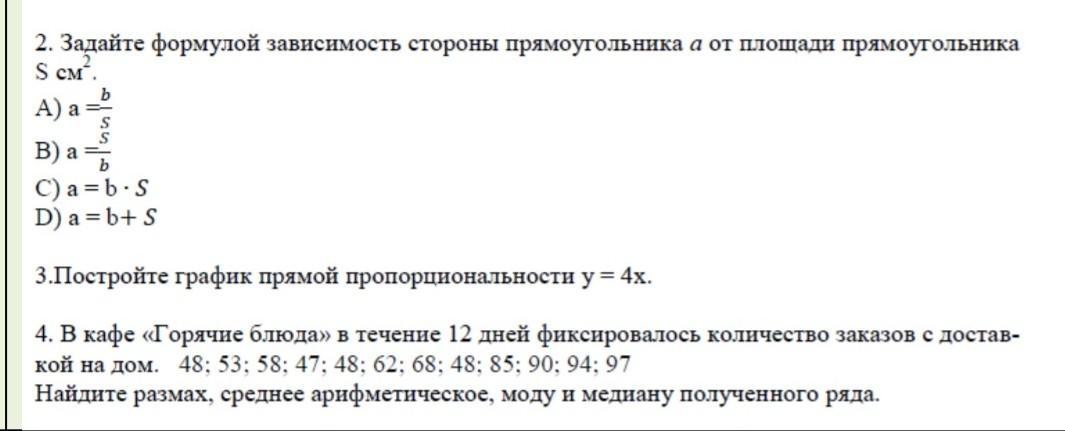 2. Задайте формулой зависимость стороны прямоугольника а от площади прямоугольника