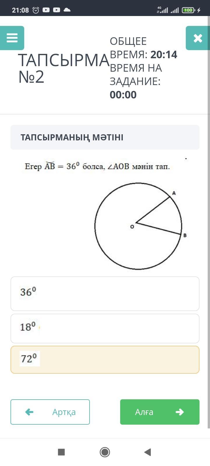 Егер АВ = 36º болса, ZAOB менін тап.