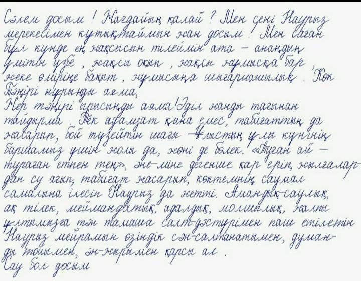 Жазылым Төменде берілген екі тақырыптың бірін таңдап, жазба жұмысын орындаңыз. Жазылым жұмысында тақырыптан ауытқымай, абзац түрлерін жүйелі құрастырып, көркемдегіш құралдарды орынды қолданып, орфографиялық, пунктуациялық нормаға сай жазыңыз. [5] 1. Ғылым мен технология дами келе адамзаттың орнын басады деген пікірге келісу-келіспеу себептерін көрсетіп жазыңыз. 2. Қазіргі кезде қазақтың салт-дәстүрлерін өзгертіп жатады, бұл дұрыс па? Көтерілген мәселе бойынша өз пікіріңізді нақты мысалдар келтіріп жазыңыз. 70-80 сөз *