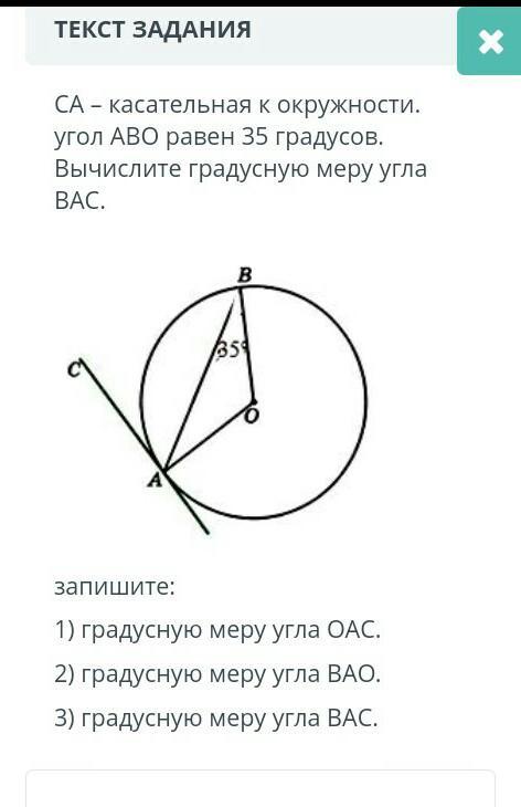 3) <ВАС=<ОАС-<ОАВ = 90° - 35° = 55°