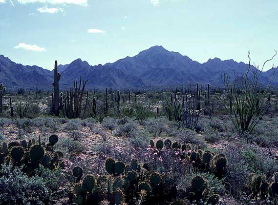 Засухоустойчивые травы и колючие кустарники произрастают