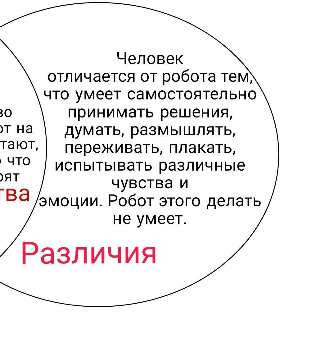 2.Заполни диаграмму Венна, сравнив робота с человеком. Отметь, что у них общего, в чем различие