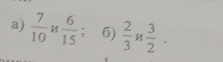 7/10 и 6/15, приводим к общему знаменателю, получается 21/30 и 12/30.Ответ:21/30 больше 12/30, тоесть 7/10 больше 6/15.