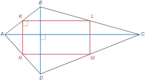 а) Диагонали ABCD перпендикулярны, следовательно стороны KLMN также перпендикулярны.