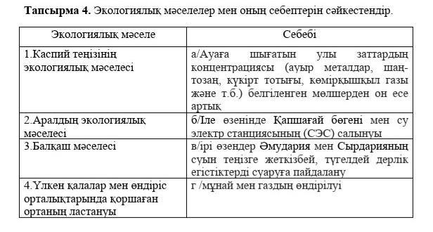 Тапсырма 4. Экологиялық мәселелер мен оның себептерін сәйкестендір.