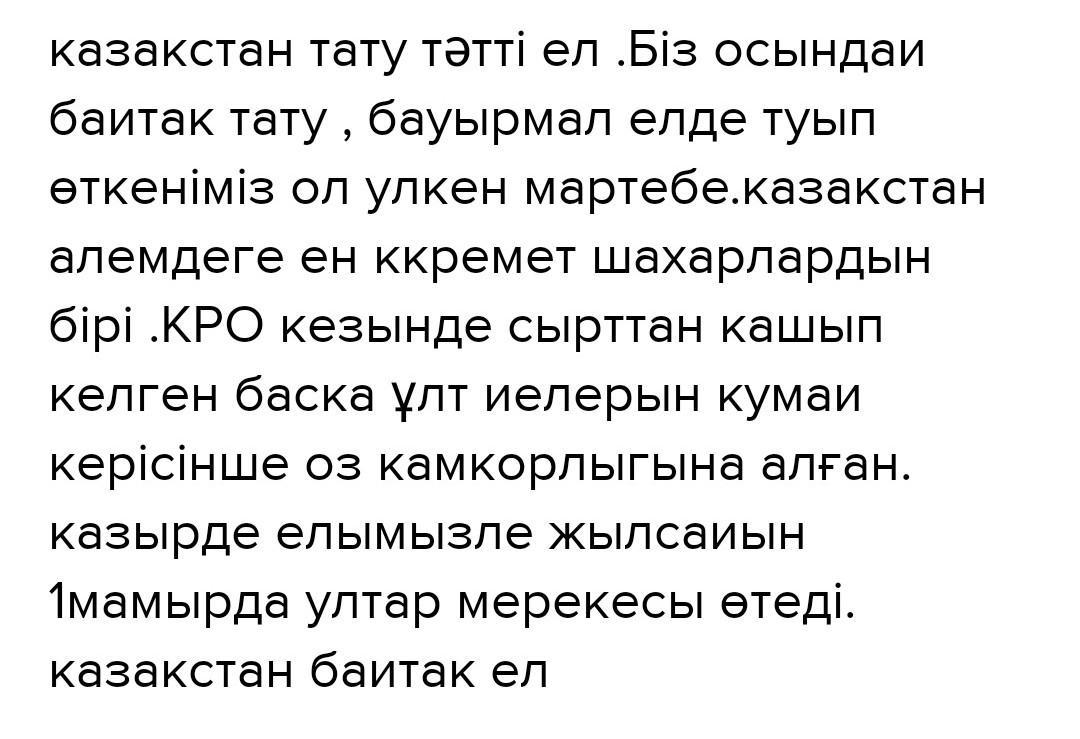 Сөздерді орфографиялық нормаға сай жазып, есімдіктерді және болымды және болымсыз етістіктерді қолдана отырып, сөйлем соңында қойылатын тыныс белгілерді орынды қолданыңыз. ( 60-70 сөз.)