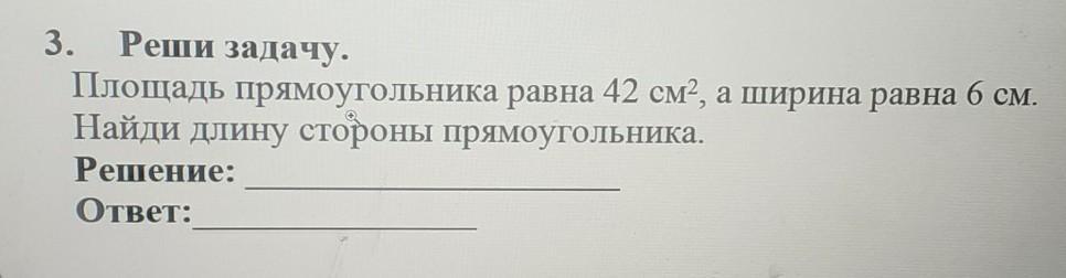 Площадь прямоугольника равна 42 см², а ширина равна 6 см.