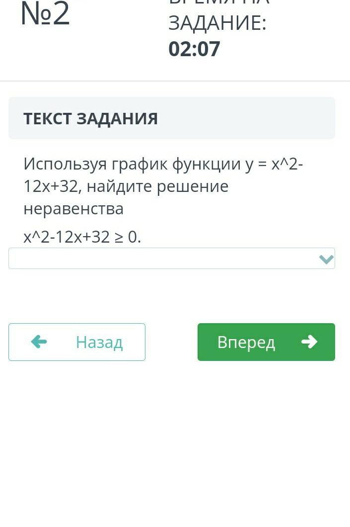 Используя график функции у = x² - 12x + 32, найдите решение неравенства x² - 12x + 32 ≥ 0.