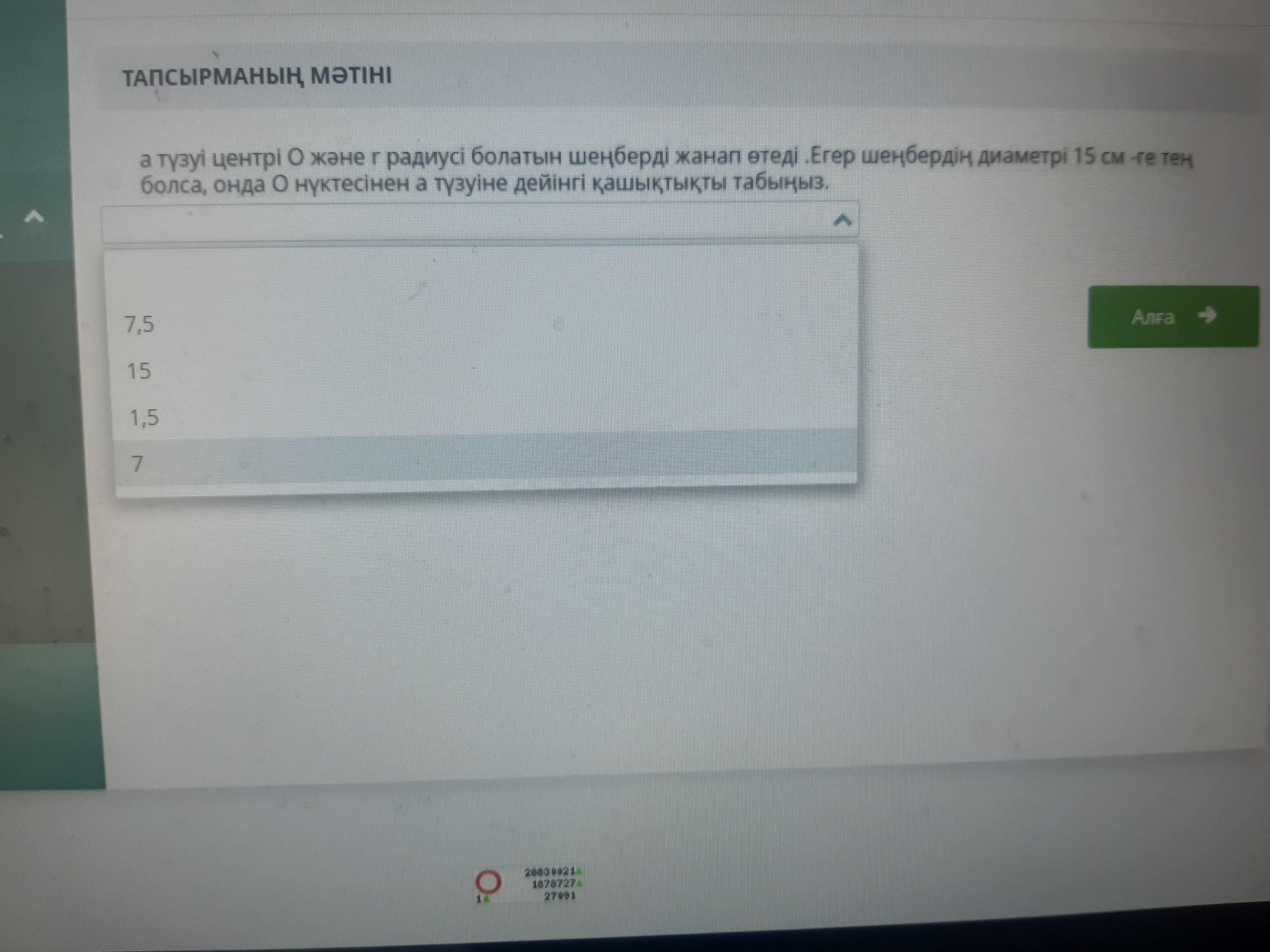 Если диаметр круга 15 см, найдите расстояние от точки O до соли a.
