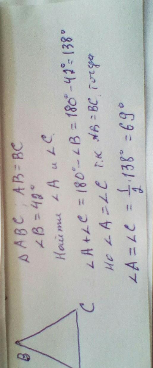 В равнобедренном треугольнике ABC с основанием AC угол B равен 42 градусам.