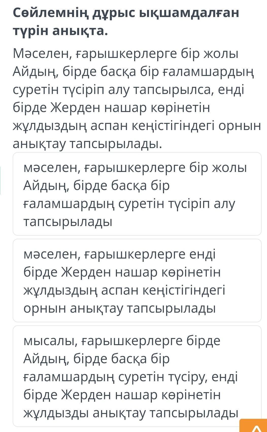 Мысалы,ғарышкерлерге бірде Айдың,бірде басқа бір ғаламшардың суретін түсіру,енді бірде Жерден нашар көрінетін жұлдызды анықтау тапсырылады
