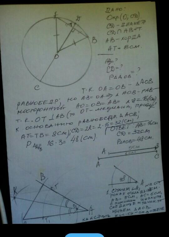В окружности с центром в точке О перпендикулярно хорде СМ проведен диаметр АD, Е – точка их пересечения. СОМ = 60°, ЕМ = 4,7 см. Найдите длину диаметра окружности.