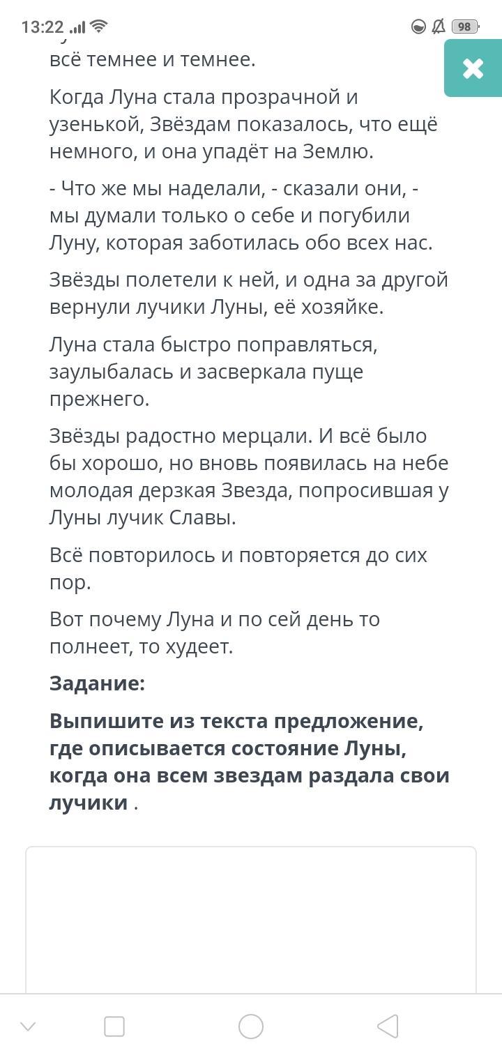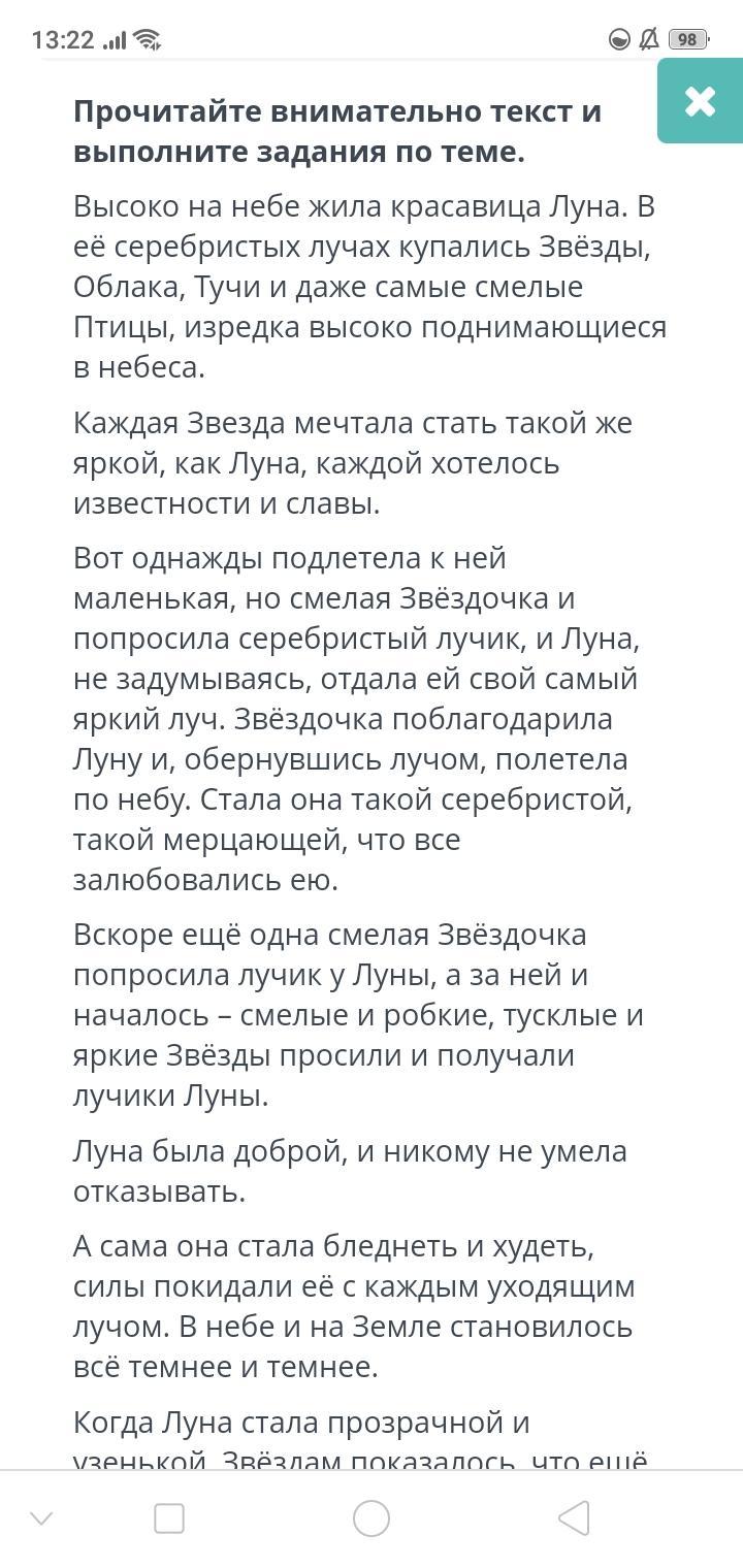 Выпишите из текста предложение где описывается состояние луны когда она всем звездам раздала свои лучики помогите пожалиуста!!!