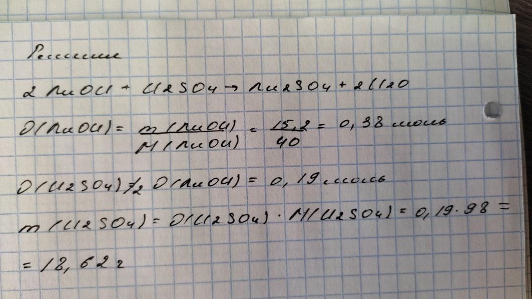 определите массу серной кислоты, необходимой для нейтрализации 15.2г гидроксида натрия. выпишите массу образовавшийся соли