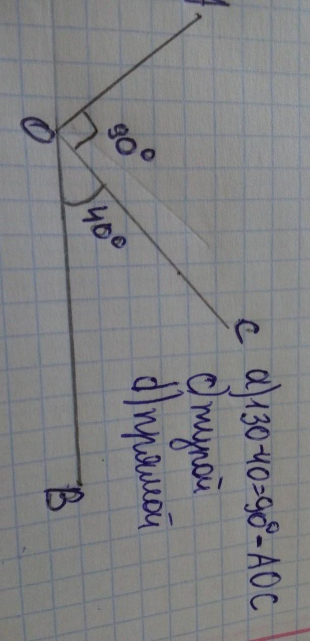 4. угол аов равен 105 градусов. внутри этого угла проведен луч ос. a) найдите градусную меру угла аос, если угол вос равен 40 градусов. b) постройте чертеж. c) определите вид угла аов (полный, развёрнутый, тупой, прямой, острый). d) определите вид угла аос (полный, развёрнутый, тупой, прямой, острый).