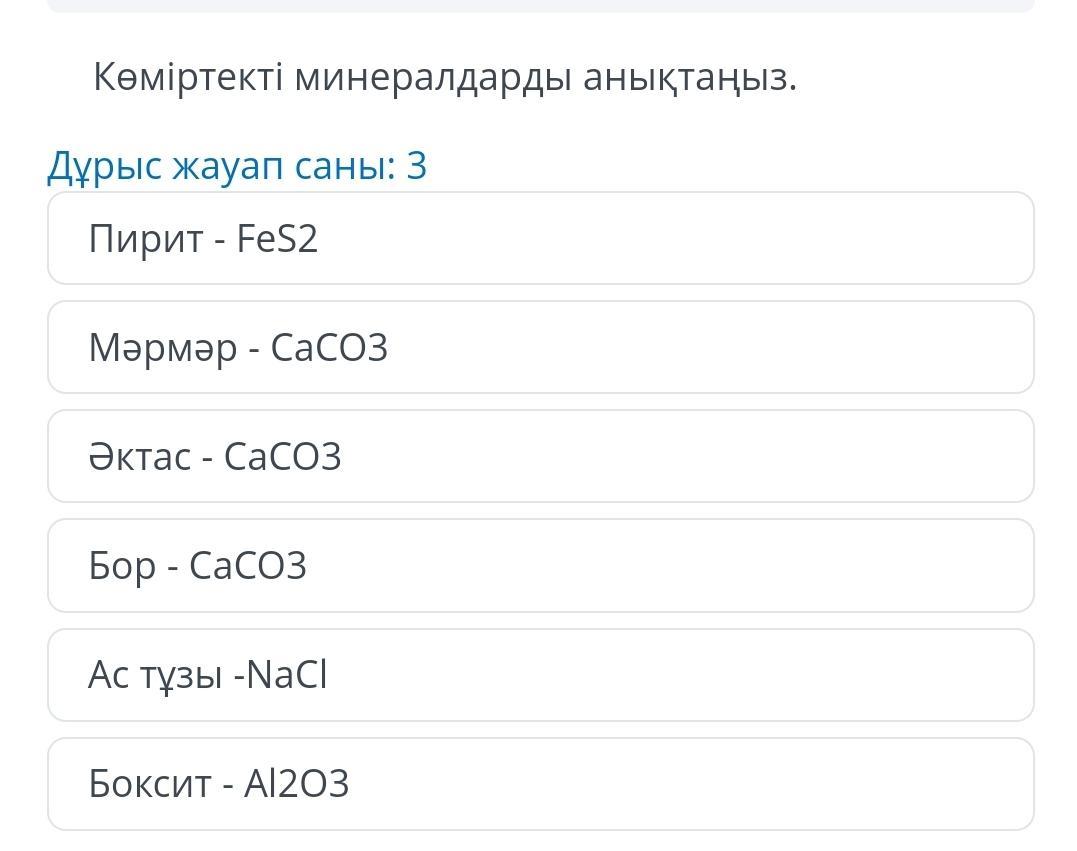 Ответ:Мәрмар,Әктас,Боксит