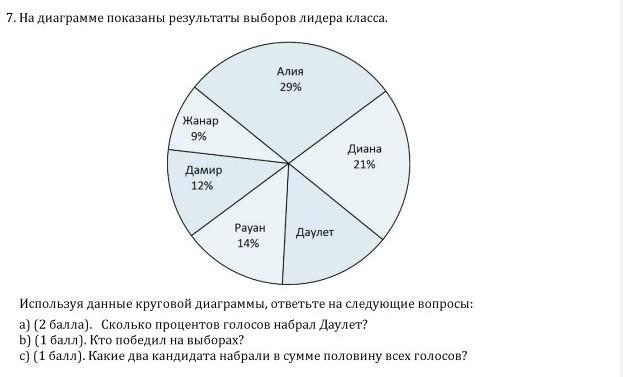 с) Рауан и Даулет два кандитата набрали в сумме половину всех голосов