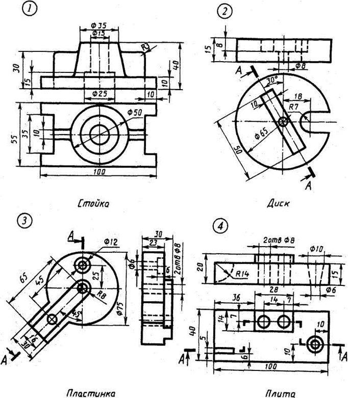 Дая 100б. Соединить половину фронтального разреза с половиной вида спереди. Только то, что под номером 1