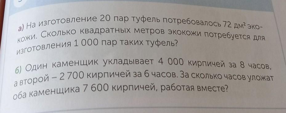 б) (4000:8)+(2700:6)=500+450=950 кирпичей в час кладут два каменщика