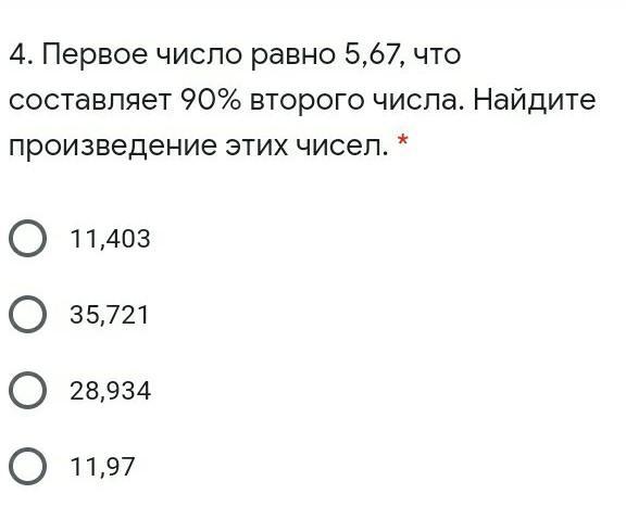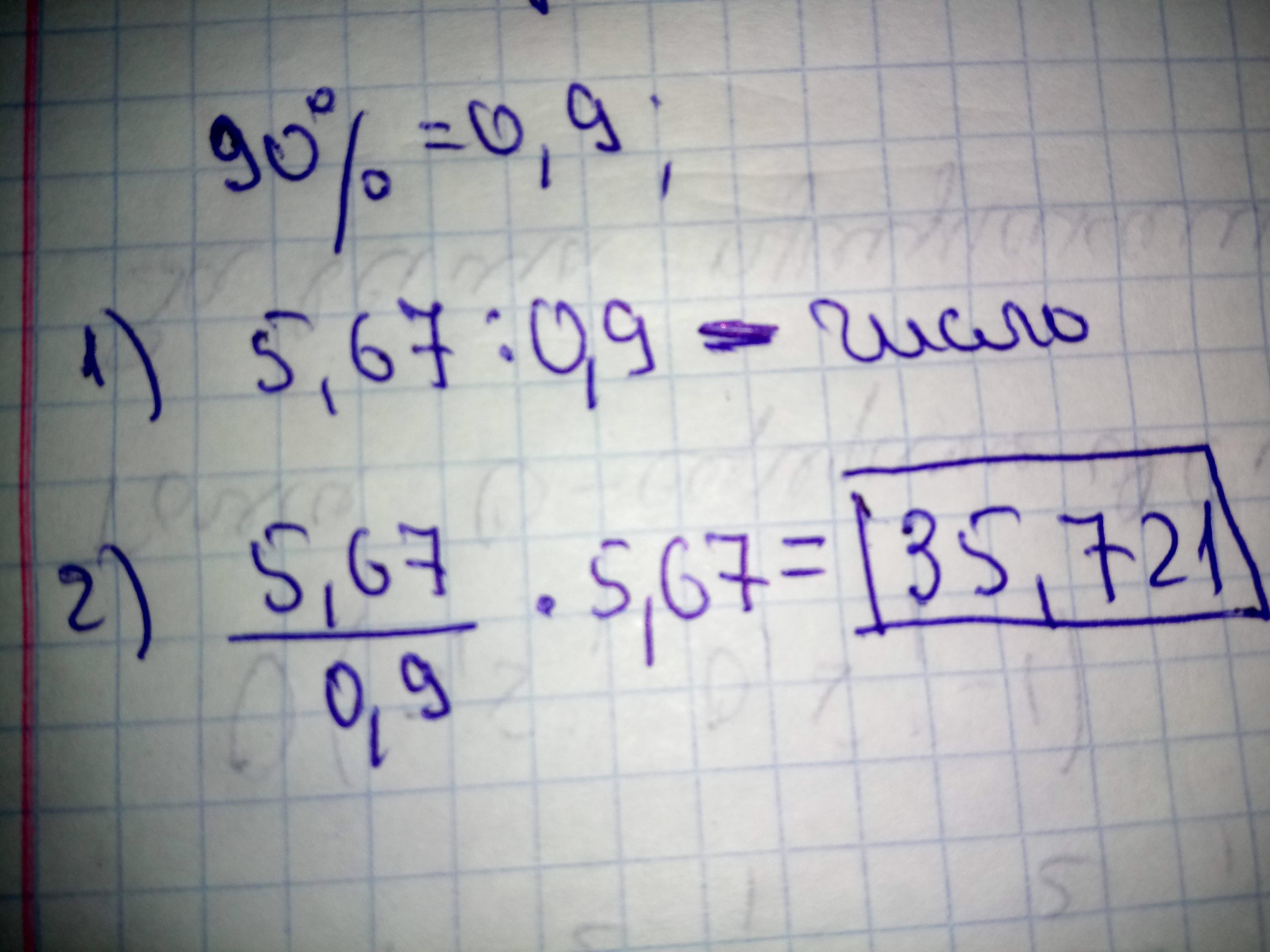 Первое число равно 5,67, что составляет 90% второго числа. Найдите произведение этих чисел