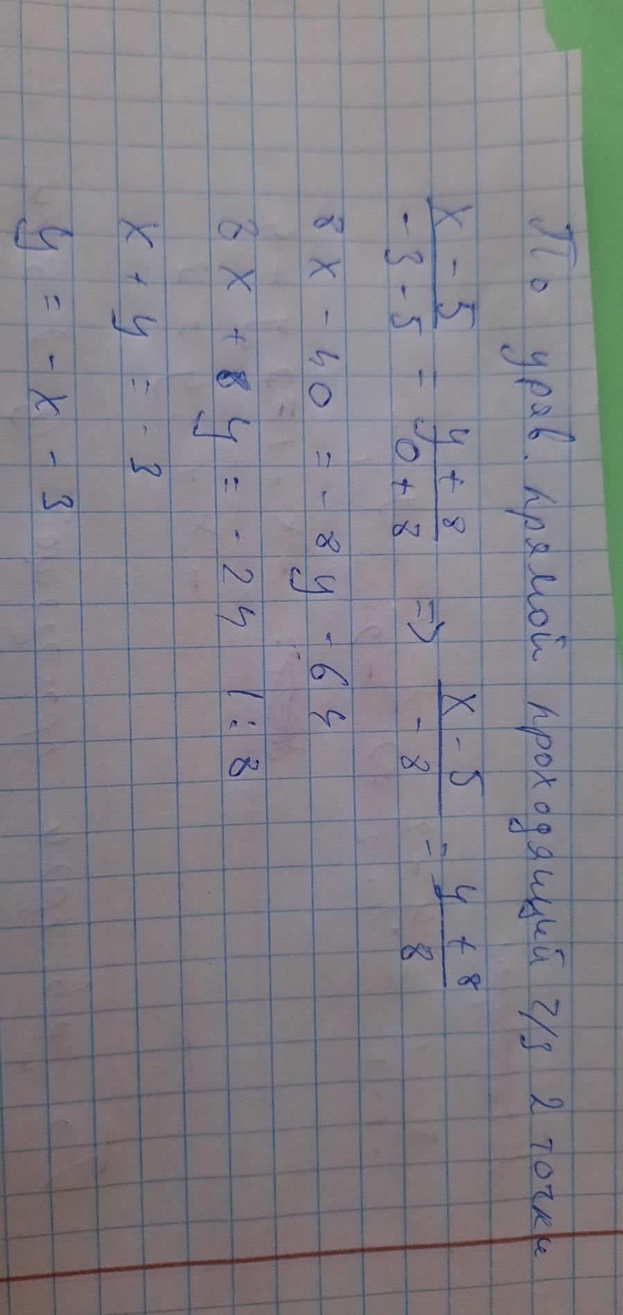 составьте общее уравнение прямой проходящей через точки а (1;-4) в (-3;0)
