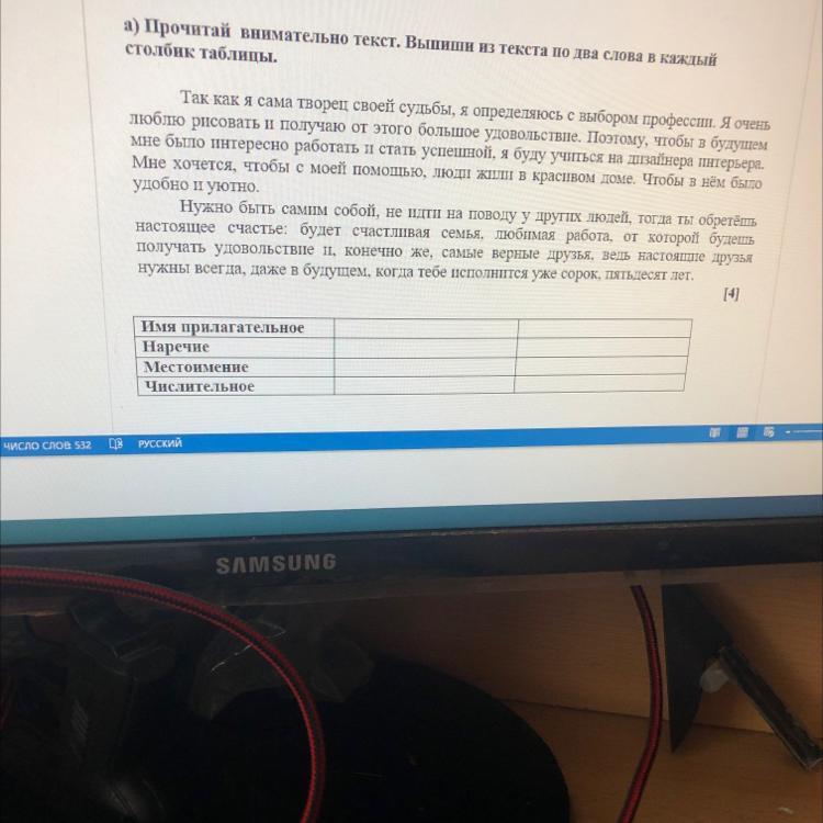 а) Прочитай внимательно текст. Выпиши из текста по два слова в каждый