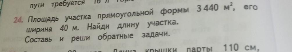 1. Длина прямоугольного участка 86м, площадь 3440 м², найти ширину участка.
