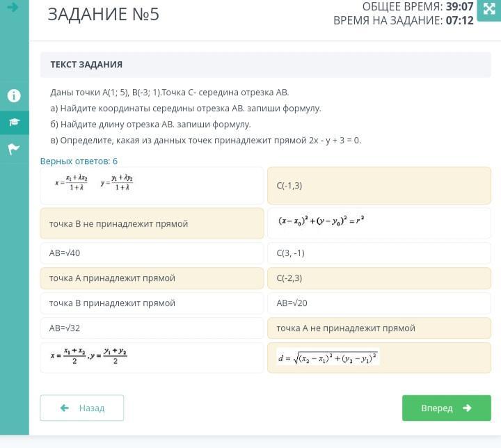 а) Найдите координаты середины отрезка AB. запиши формулу.