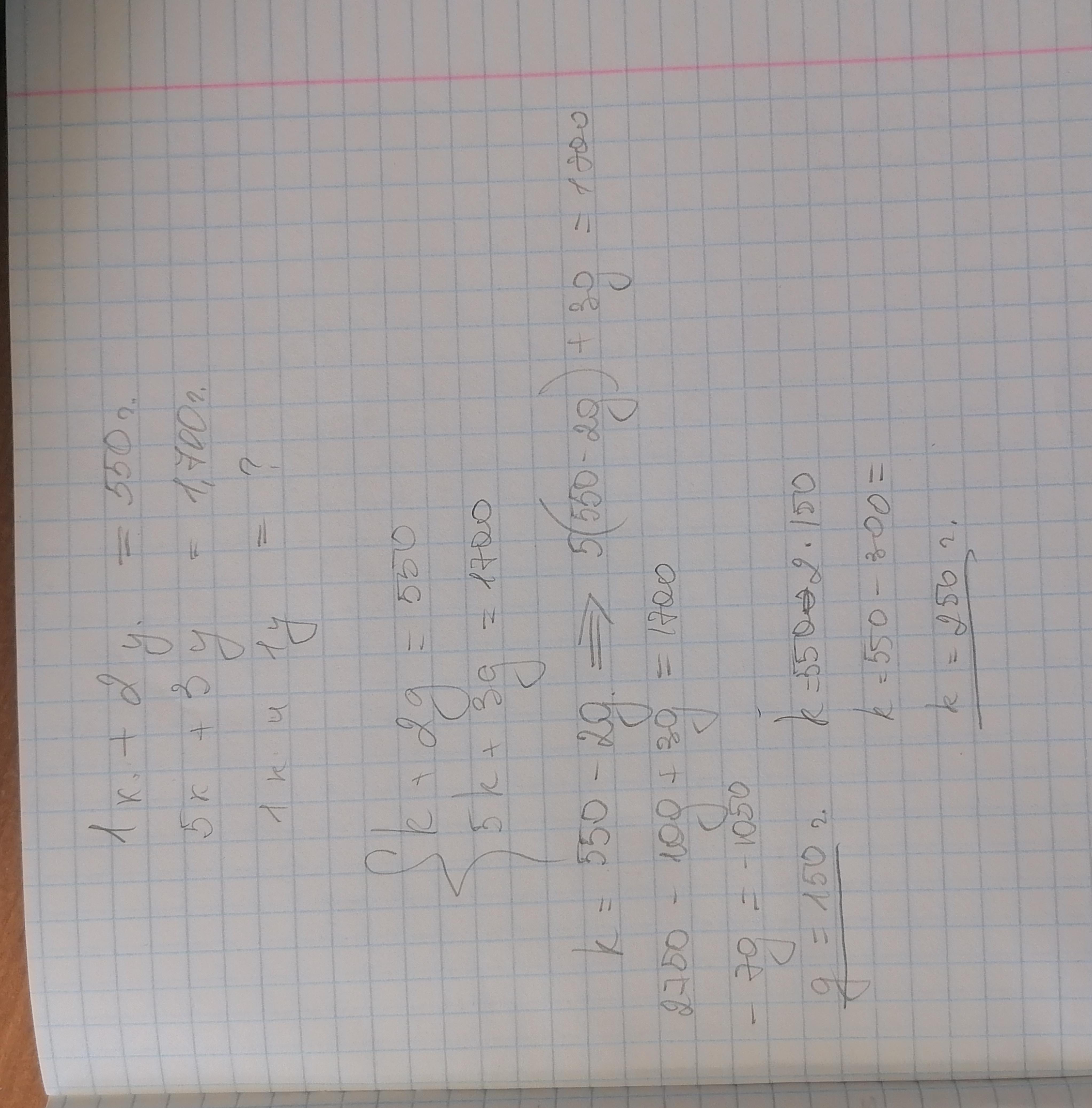 одна пачка конфет и две упаковки урюка весят 550г. 5 пачек конфет и 3 упаковки урюка 1 кг 700г. х сколько весит одна пачка конфет, одна упаковка урюка