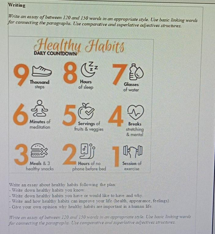 Write and how healthy habits can improve your life (health, appearance, feelings).