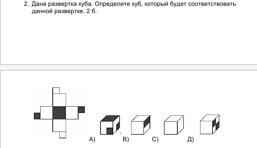 Ответ Д. Маленькие кубики составят одну грань в шахматном порядке.