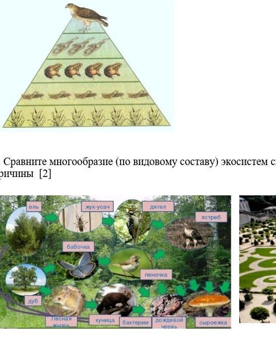 3. Сравните многообразие (по видовому составу) экосистем смешанного леса и городского парка. Укажите причины [2]
