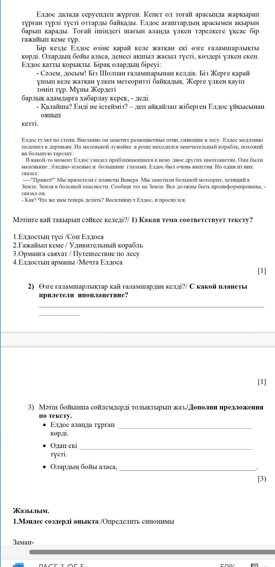 СОЧ по казахскому 4 четверть дополни предложения по тексту 3 задание помогите плиииизззз