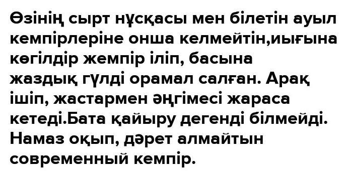 Нағыз әже әңгімесіндегі современный әженің келбетін автор қалай сипаттайды ойыңызды 3-4 сойлеммен жеткізіңіз
