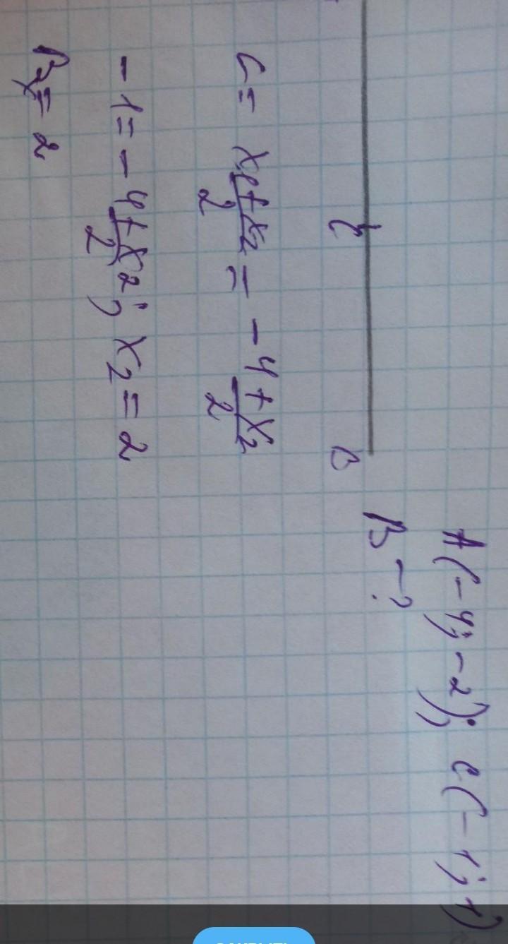 3. Даны точки А, В, С. Если А(-4; 2) и С(-1; -1) являются серединой отрезка АВ, то найдите координаты точки В. [4]