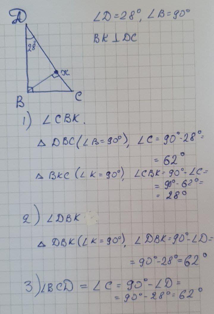 Найти утлы CBK, DBK, BCD (сделайте чертеж).
