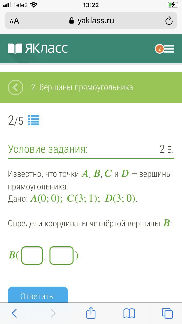 Определи координаты четвёртой вершины :