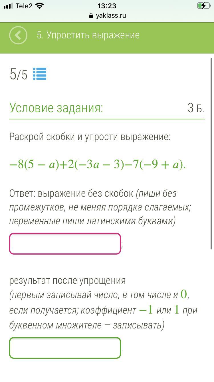 Ответ: выражение без скобок (пиши без промежутков, не меняя порядка слагаемых; переменные пиши латинскими буквами)