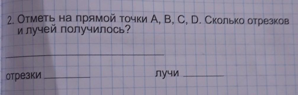 2. Отметь на прямой точки A, B, C, D. Сколько отре