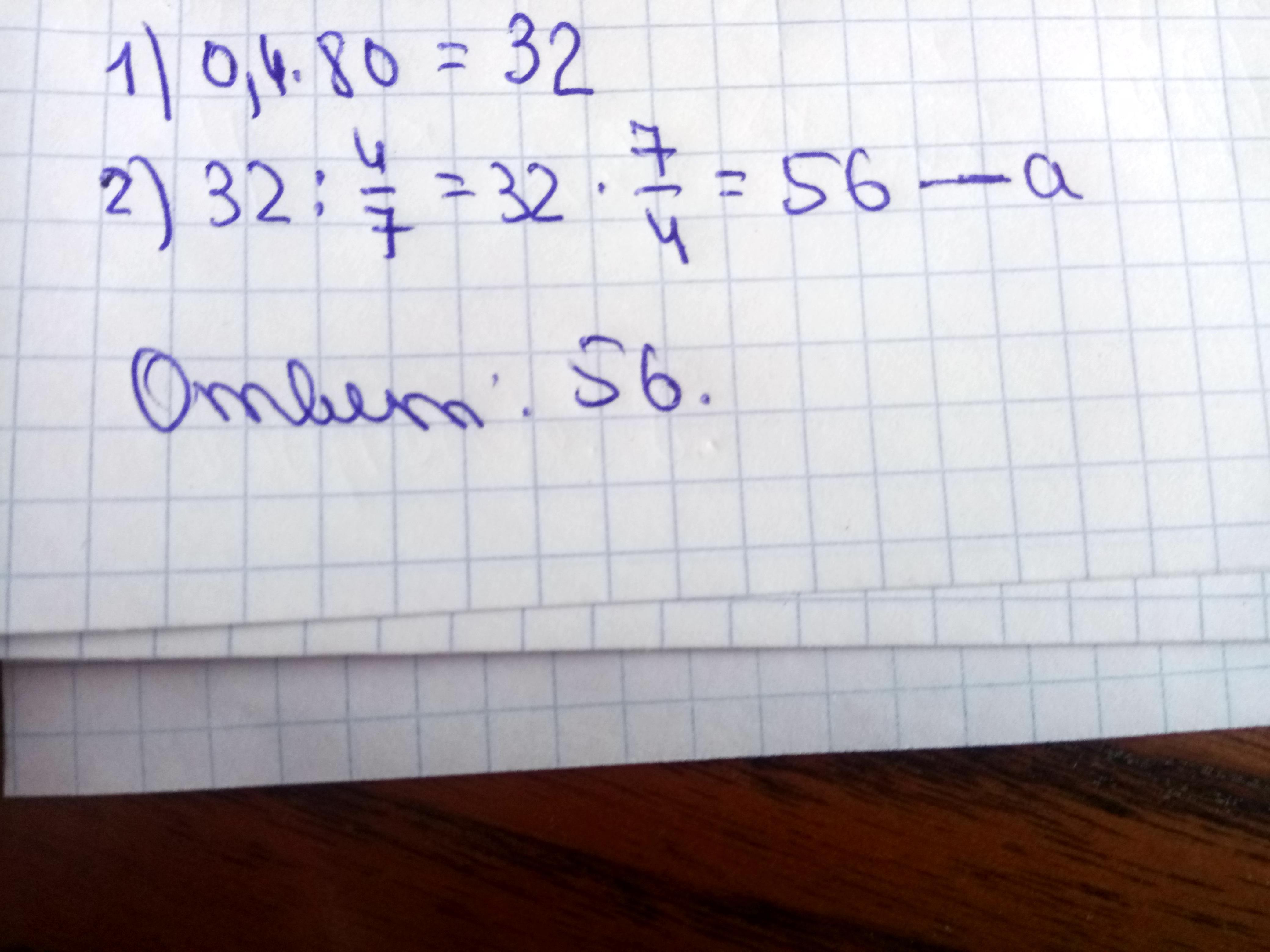 32 : 4/7 = 32 ⋅ 7/4 = 56