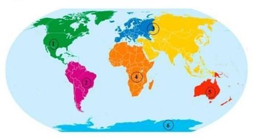 Рассмотри карту мира на ней все материки отмечает числами 1-6 Запиши все названия материков
