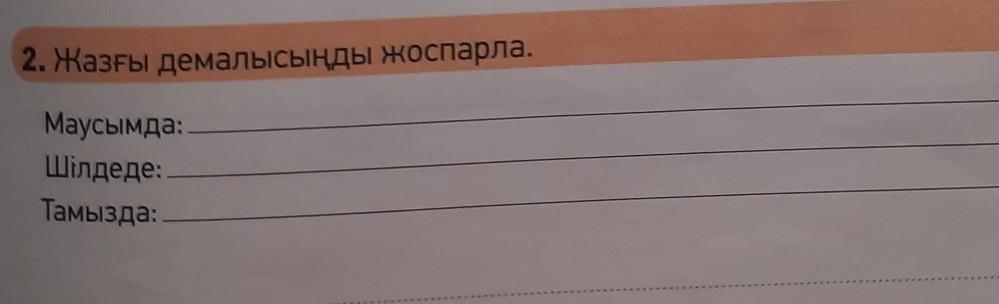 Тамызда мен үйде боламын көршілес балалармен ойнап, тамыздың соңында сабаққа дайындаламын.Менің жазғы демалысым осылай өтпекші